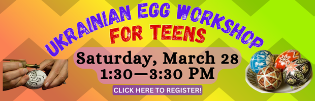 Wear your "getting messy" clothes as you learn to paint beautiful Ukrainian eggs! Presented by Kati Bourque; grades 6 - 12.