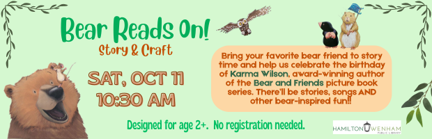 Bring your favorite bear friend to a special story time celebrating "Bear and Friends" author Karma Wilson’s birthday.