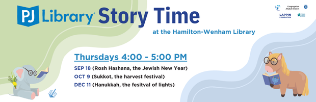 Register ahead for special story times with Ms Rachael of PJ Library, exploring Rosh Hashanah (Sept. 18), Sukkot (Oct. 9), and Hanukkah (Dec. 11).