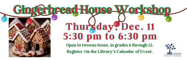 Ages 12 - 18 are invited to decorate your own mini-gingerbread house with candy, frosting, and your imagination.