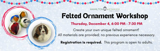 Create your own unique felted ornament during this workshop with artist Tif Farmakis-Day!