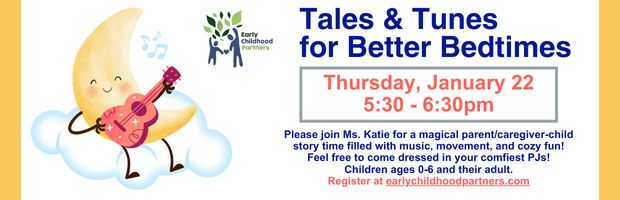 Join Ms. Katie for a magical parent/caregiver-child story time and learn simple, simple, soothing ways of adding music to bedtime.