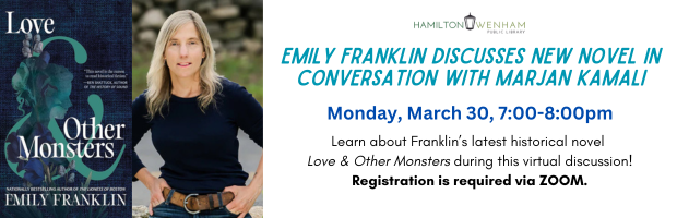 Bestselling author Emily Franklin will discuss her new historical fiction novel with fellow author Marjan Kamali.
