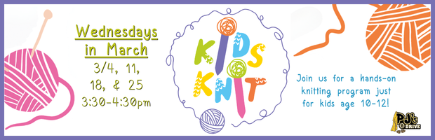 Learn basic knitting skills over the course of four sessions. We've got yarn, you bring the needles! Click for more re: needles and how to register.