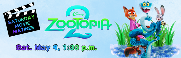 Watch ZOOTOPIA 2 (PG, 108 min.) on our big screen! Drinks provided; bring your own snacks.
